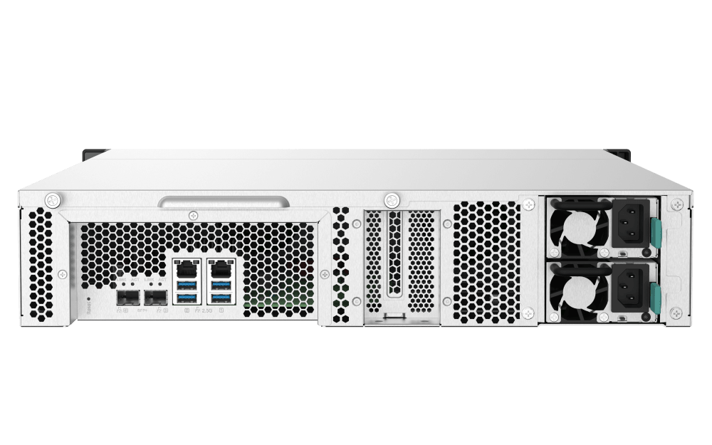 NAS de montaje en rack de cuatro núcleos a 1,7 GHz con puertos SFP+ 10GbE y 2,5GbE y fuente de alimentación redundante para entornos de TI y Pymes